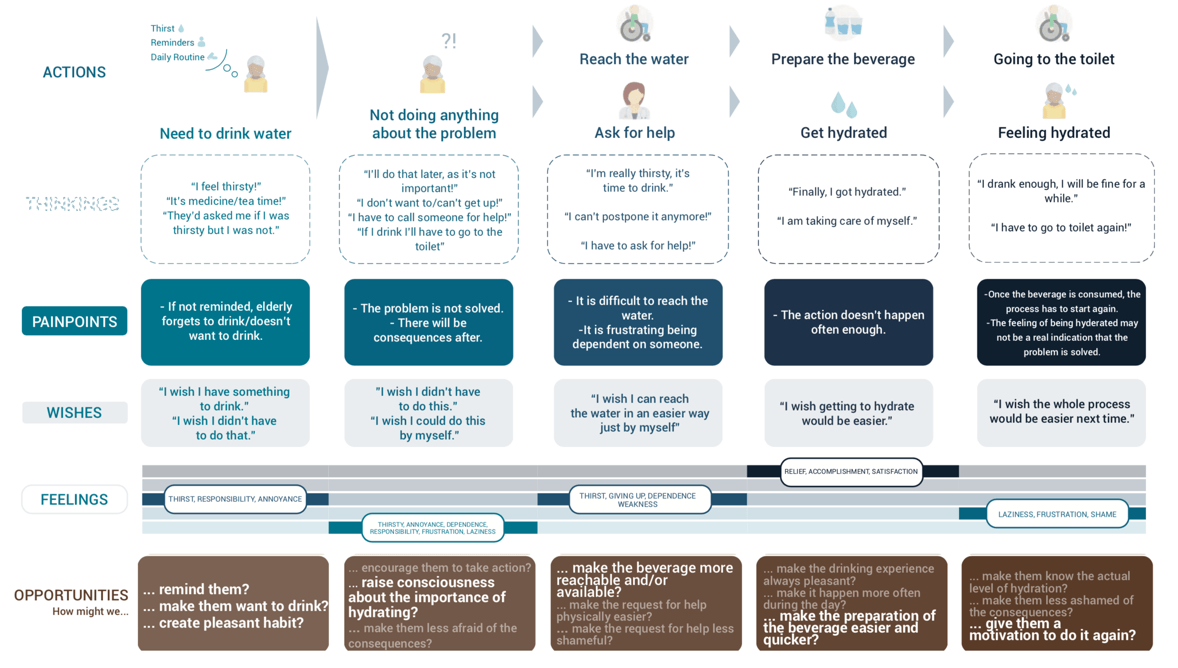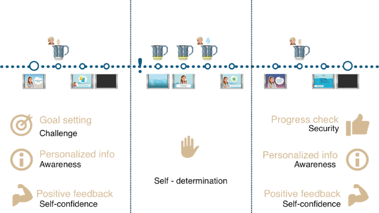The design of a behavioural changing technology, studied to motivate elderly and raise awareness towards the often undervalued dehydration problem, that affects most of the seniors and causes serious health damages.